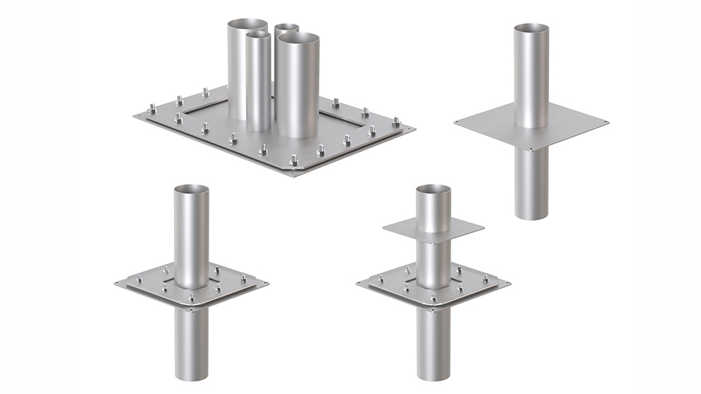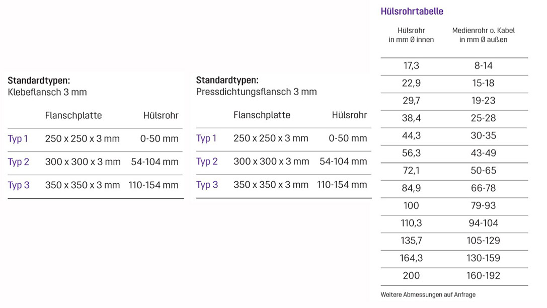 Sie können dabei zwischen runde oder eckigen Rohrdurchführungen wählen, die auf einer Flanschplatte kombinierbar sind.
